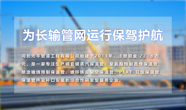 河北元豐管道工程有限公司是一家專注生產(chǎn)鋼套鋼蒸汽保溫管、聚氨酯預(yù)制直埋保溫管、噴涂纏繞預(yù)制保溫管、鍍鋅鐵皮架空保溫管、PERT-Ⅱ型保溫管、保溫管件及補(bǔ)口安裝的綜合性研發(fā)型服務(wù)企業(yè)。